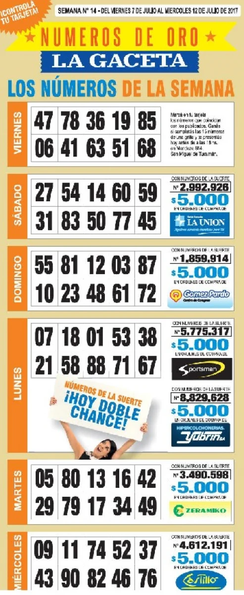 Como cada miércoles, se publicó la grilla completa de los Números de Oro de LA GACETA para que los lectores puedan revisar sus tarjetas. Aquellos que completen los 15 números de una de las grillas de su cartón deberán presentarse en calle Mendoza 654 hasta las 18, que cierra la semana número 14 de Números de Oro. En caso de que el ganador sea usuario Tarjeta Sol, duplica el premio.