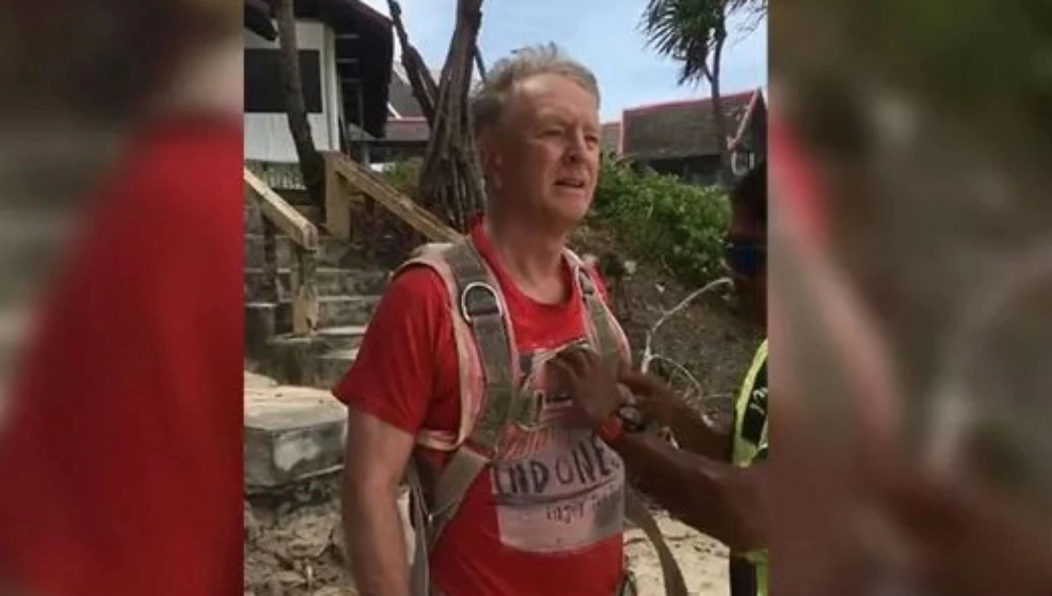 El video revela la caída al mar de Roger John Hussey, de 71 años, desde una altura de más de 30 metros, al parecer al romperse el arnés que llevaba, según publicó el periódico local Bangkok Post.