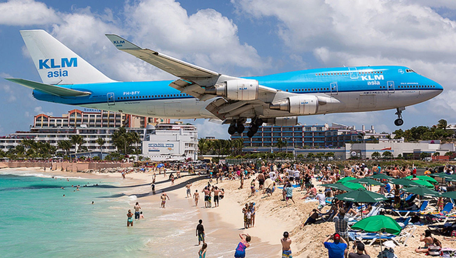 Maho Beach se encuentra en la paradisíaca isla de St Maarten, en pleno Caribe. Pero los turistas no sólo llegan a ese lugar atraídos por las aguas cristalinas y la arena blanca. Miles de amantes de los aviones la visitan, porque brinda la posibilidad de vivir una experiencia única: ver pasar a gigantescas aeronaves apenas unos metros por arriba de sus cabezas.
