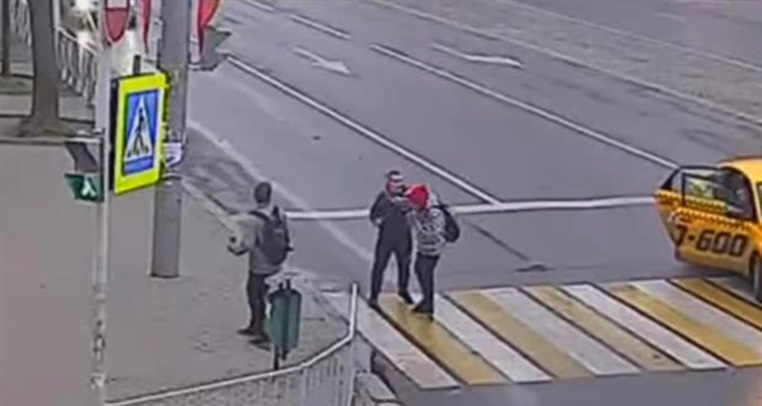 Un taxi venía a gran velocidad por una calle justo en el momento en el que dos jovenes la cruzaban. El chico decidió quedarse parado en la senda peatonal esperando a que el auto frenara. Esta situación generó una tremenda pelea.