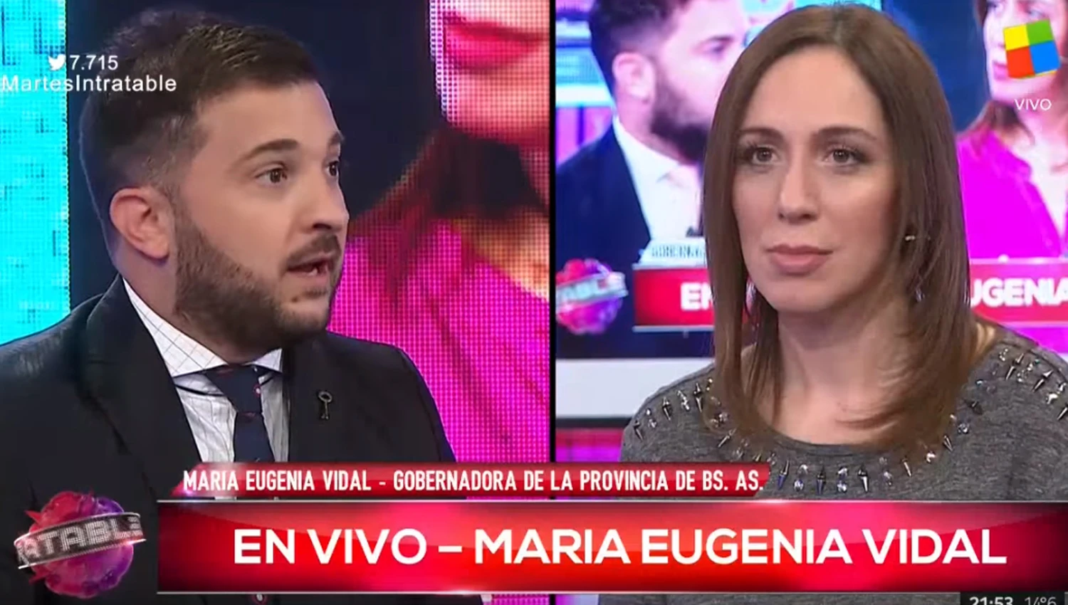 Este martes a la noche, el panelista del programa conducido por Santiago del Moro, volvió a cuestionar a Vidal y le preguntó por qué Cambiemos perdió en dos de los distritos que habían ganado en el 2015: Quilmes y Pilar. A esto, la gobernadora respondió: "iremos a esos dos lugares a ver qué pasó, qué falta y qué se puede mejorar".