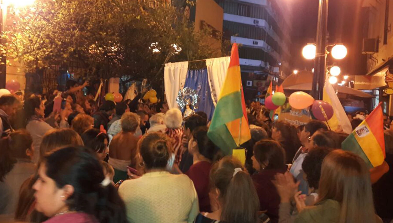 Era 15 de agosto y un centenar de fieles se han movilizado por la 25 de Mayo, calle que cruza el centro de la capital provincial. Acompañados por la noche, los creyentes habían salido de la plaza Urquiza en una procesión llena de baile, canto y rezo.
