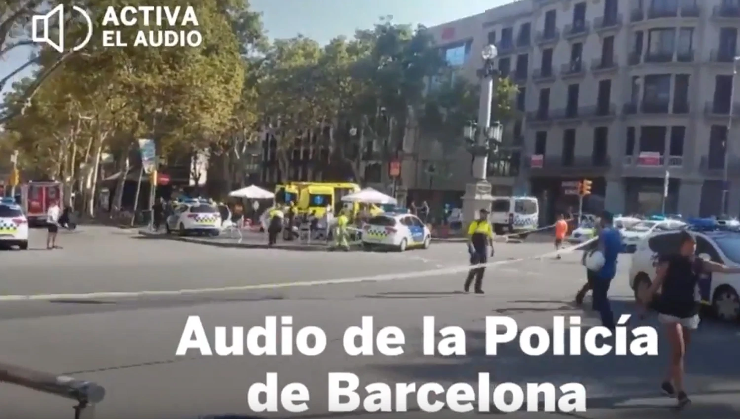 Según lo publicado por el diario Elpais.com "la grabación da cuenta de un 'arrollamiento' en la zona alta de Las Ramblas de la capital catalana. El autor, según este audio, sería un individuo de un metro y setenta centímetros, vestido con una camisa de color blanco y rayas azules".