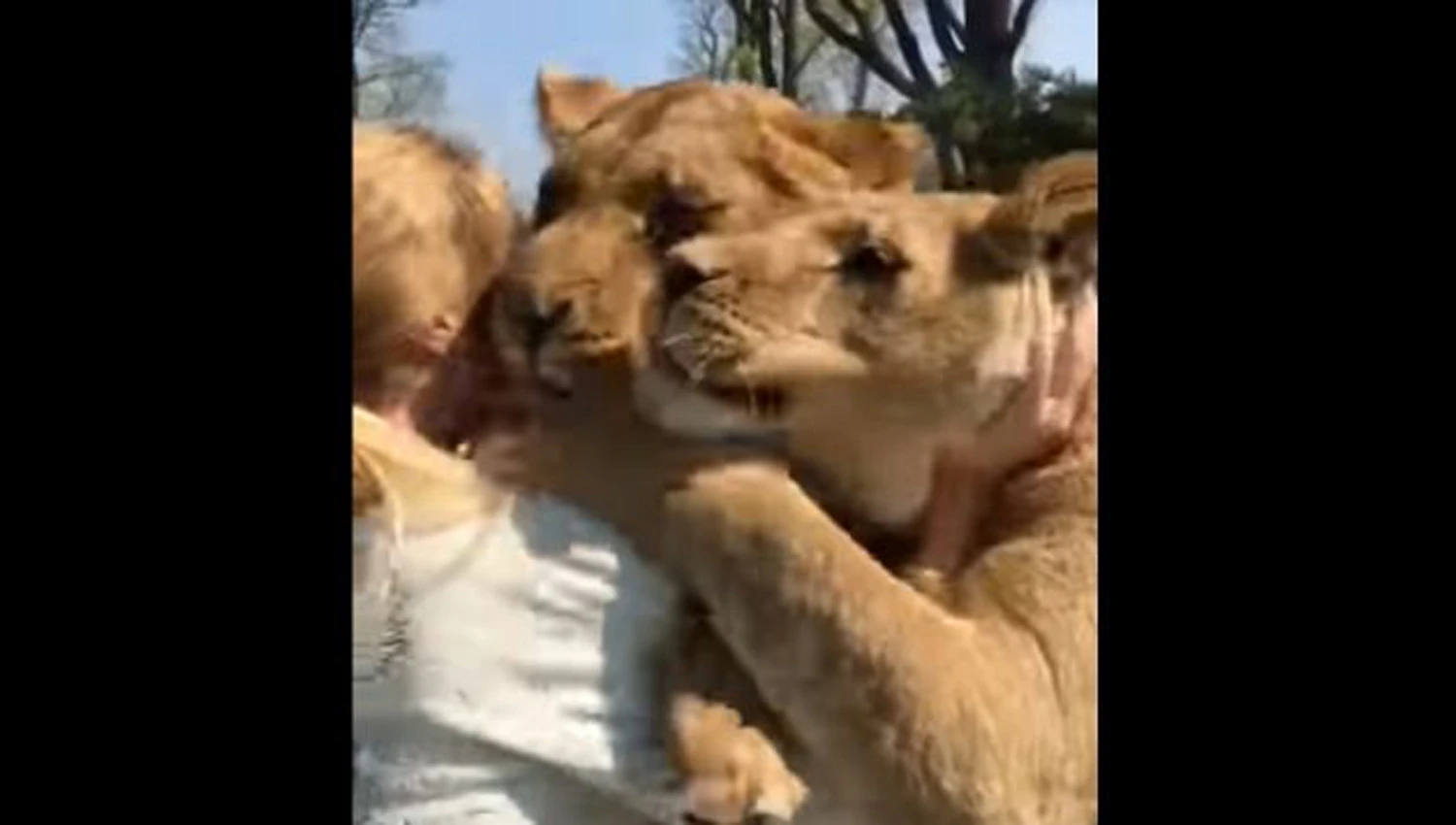 Video: mirá el cariñoso reencuentro de dos leonas con su supuesta rescatista