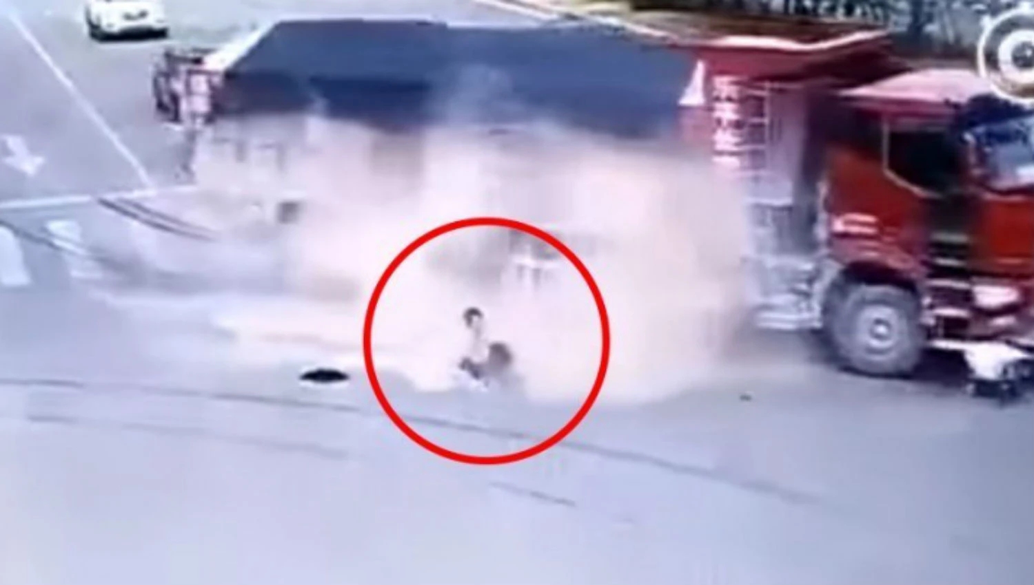 De este modo, el joven cae de la moto sin hacerse algún daño, pero esto no era todo, ya que por el carril contrario venia otro camión que también lo iba a impactar, sin embargo, por segunda vez sale ileso y logra sobrevivir.