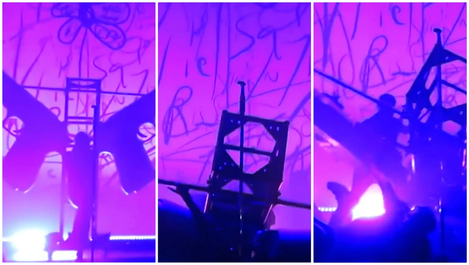En las grabaciones quedó registrado el momento exacto en que la estructura se desploma sobre el cantante.
