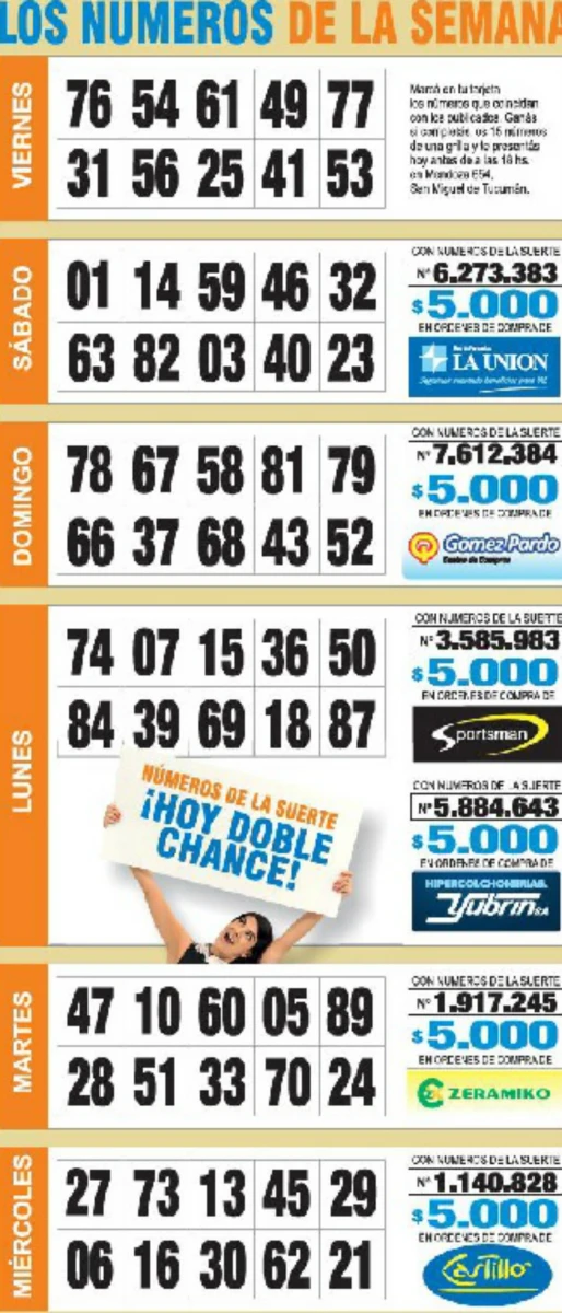 Controlá tu tarjeta. Podés ser uno de los ganadores del jugoso premio de esta semana.
