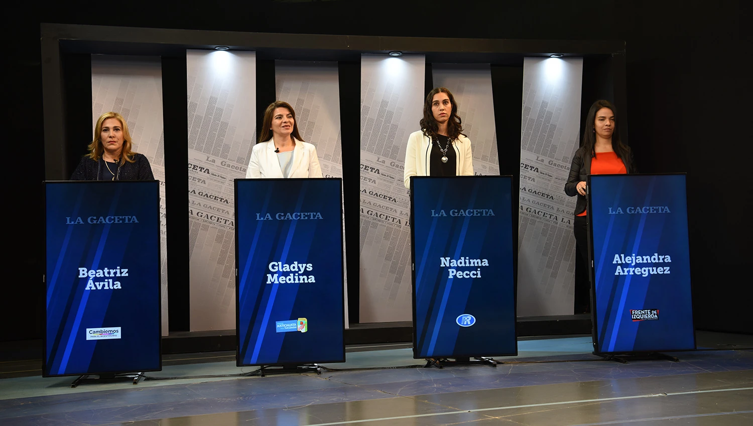 Las candidatas a diputadas en segundo término debatieron en vivo por “Panorama Tucumano”. A 10 días de las elecciones nacionales, Gladys Medina (Frente Justicialista por Tucumán), Beatriz Ávila (Cambiemos por el Bicentenario), Nadima Pecci (Fuerza Republicana) y Alejandra Arreguez (Frente de Izquierda y los Trabajadores) se vieron las caras en los estudios de Canal 10, defendieron sus propuestas y establecieron sus diferentes miradas políticas.