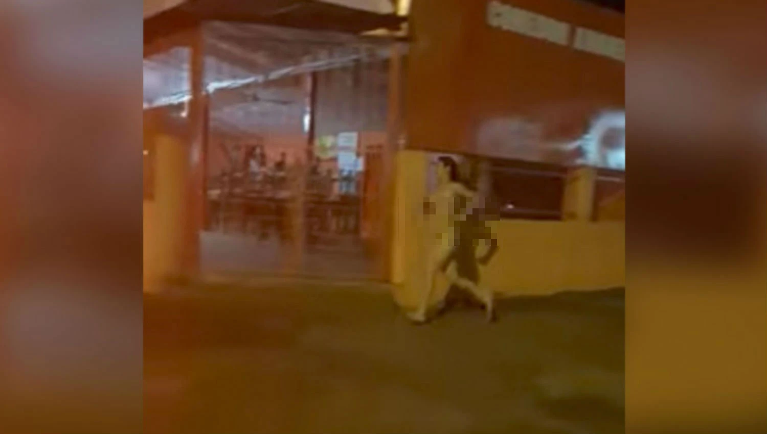 Un video muestra a una mujer completamente desnuda corriendo por una calle y persiguiendo a su novio, que minutos antes le había quitado el teléfono celular, aparentemente porque habían discutido por una infidelidad.