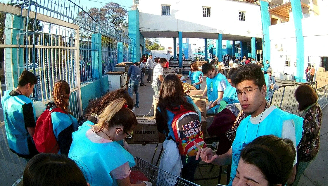 Los servidores se prepararon para entregar las empanadas después de la misa, que fueron compartidas a la canasta. Además guiaron a la gente a sus lugares para que el clima sea tranquilo y todos pudieran disfrutar de la celebración.