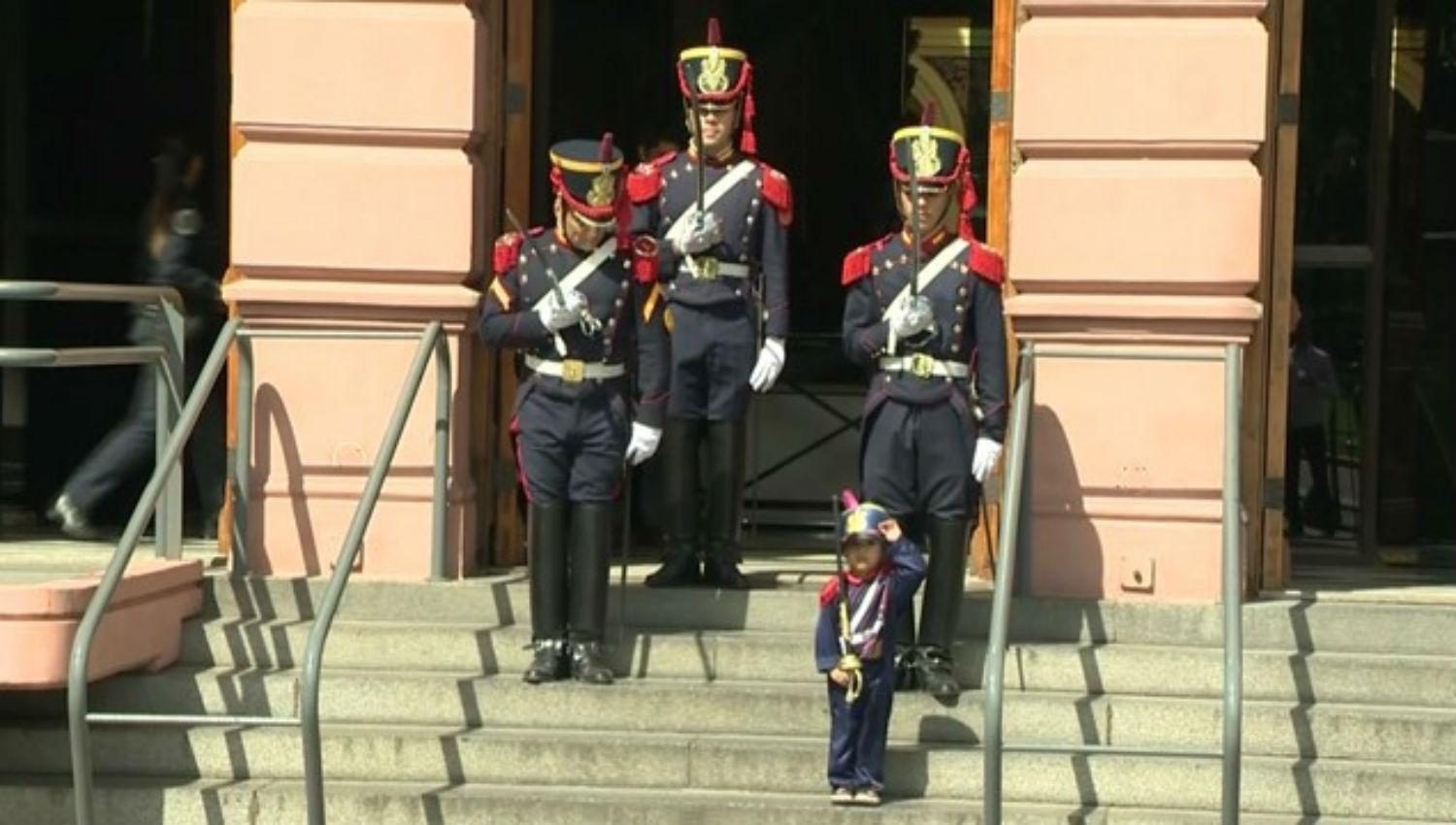 Mateo es un nene de casi tres años que en las últimas horas, luego de un video que se viralizó en las redes sociales, dejó ver su devoción por los Granaderos: en las imágenes se observa cómo el pequeño marcha al lado de los integrantes del Regimiento y los acompaña en su actividad oficial en Plaza de Mayo.