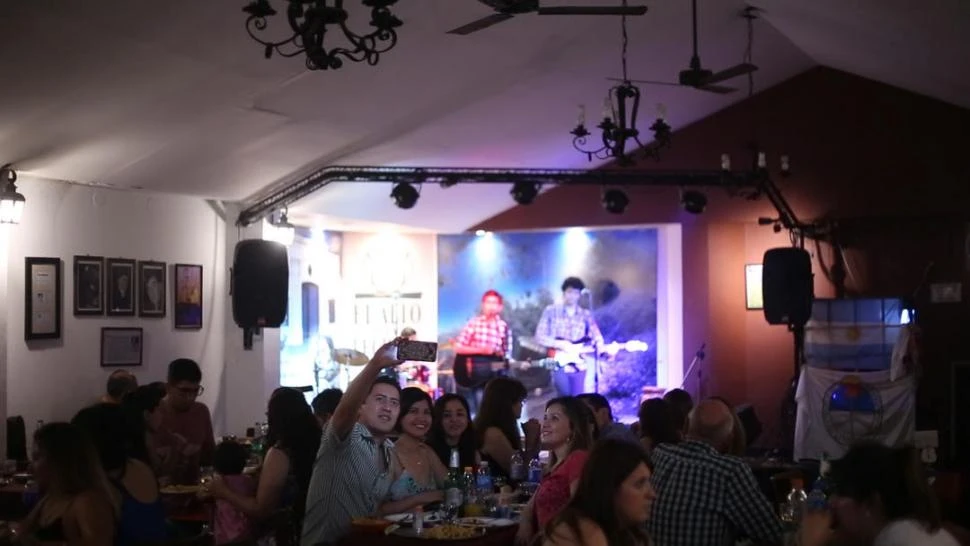 “Siempre tenemos disponibles los instrumentos para el que quiera guitarrear en la mesa”, contó Maximiliano Aguirre, quien tiene la concesión del establecimiento desde hace cuatro años y lo lleva adelante junto a su socio, César Palavecino. “El Alto se caracterizó siempre por esa bohemia, esa cosa de la noche. Tratamos de que no se pierda el tema de la guitarreada en la mesa, tocar el bombo y compartir. Es lo que queremos conservar”, explicó Aguirre, quien dijo estar agradecido con la familia Aredes por la oportunidad de manejar la peña. Abierto de lunes a sábado, ofrece espectáculos desde los jueves, aunque todos los días tienen los instrumentos disponibles para que los clientes puedan tocar música en las mesas. “Realmente nos gusta venir, creo que habría que darle más oportunidades a la gente de Tucumán, tenemos grandes músicos”, destacó Jorge Usandivaras, quien junto a Tatiana Barrionuevo relataron que asisten a la peña casi todos los sábados.