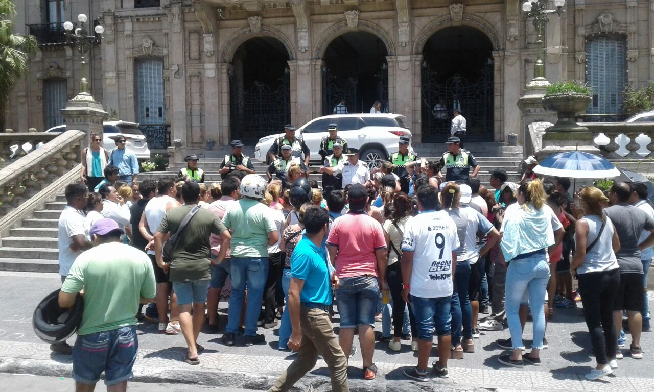 Un grupo de los afectados por los falsos gestores de casas sociales de El Manantial y Lomas de Tafí realizaron una protesta este mediodía en la plaza Independencia, sobre calle 25 de Mayo, y luego fueron recibidos por las autoridades de Casa de Gobierno.