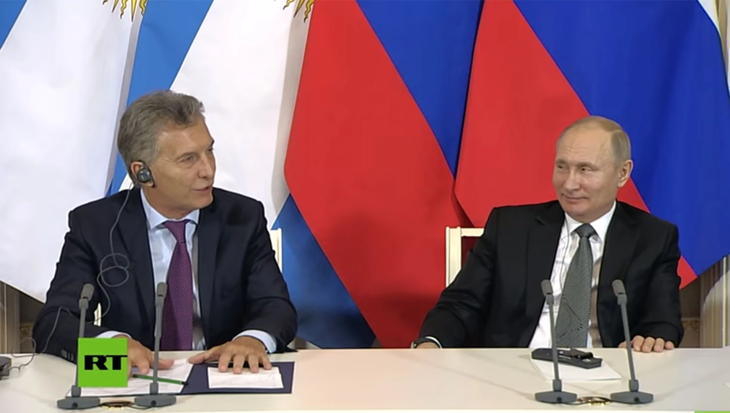 Al término del encuentro que mantuvo hoy con su par ruso, Vladimir Putin, Macri no pudo evitar hacer mención al próximo Mundial de fútbol que se disputará en esas tierras en junio, y aseguró su presencia para ver a la selección argentina.