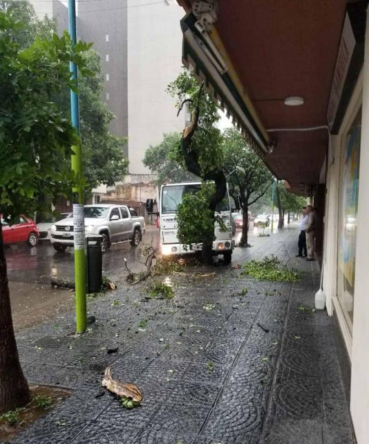 El árbol está ubicado en la esquina de calle Marcos Paz y Junín, al lado de una farmacia. Según fuentes oficiales, a pesar de haber realizado el llamado a la Policía, los uniformados no se presentaron aún en la zona del hecho.