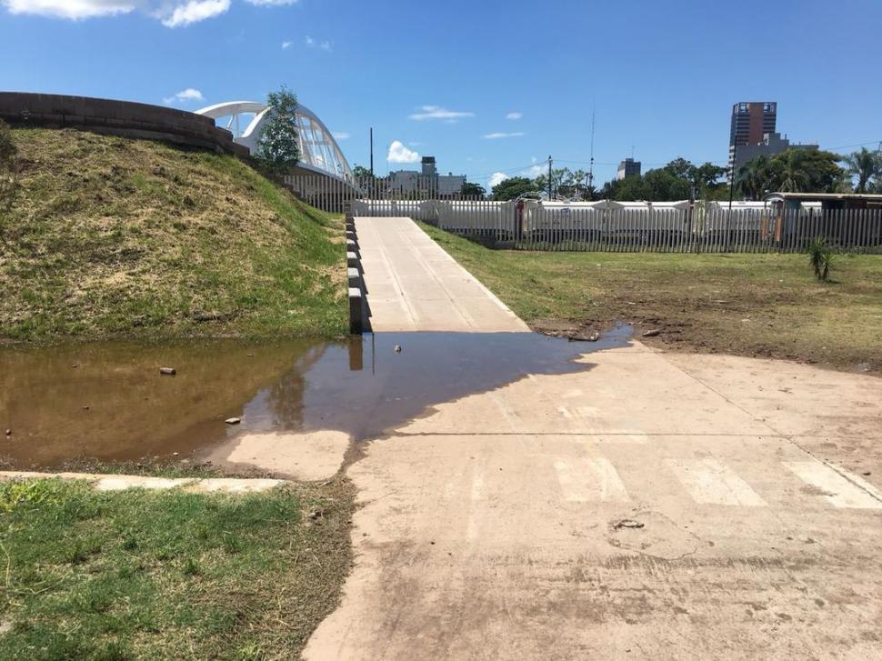 Vereda de Suipacha y Mendoza, al lado del puente peatonal, trabajos terminados y hace poco tiempo habilitados. Mucha agua y barro, señala un lector, quejándose porque en el lugar no existe un drenaje que permita que el agua escurra sin inundar las veredas, como sucedió hace pocos días después de una lluvia torrencial. Como en algunas zonas el piso no está convenientemente consolidado, se formó un verdadero lodazal, por el que nadie se atreve a circular. Y agrega que un pequeño espacio destinado para que jueguen los niños quedó totalmente embarrado e inutilizable, por lo que reclama que las autoridades responsables mejoren las condiciones de transitabilidad y acceso a dicha zona, además de eliminar las piedras, ramas y el barro acumulado desde hace varias semanas.