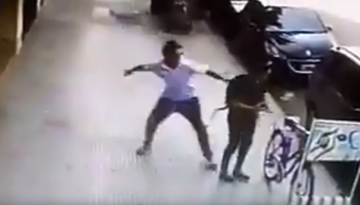 Video: estacionaba su bici cuando un hombre se acercó y le pegó una trompada