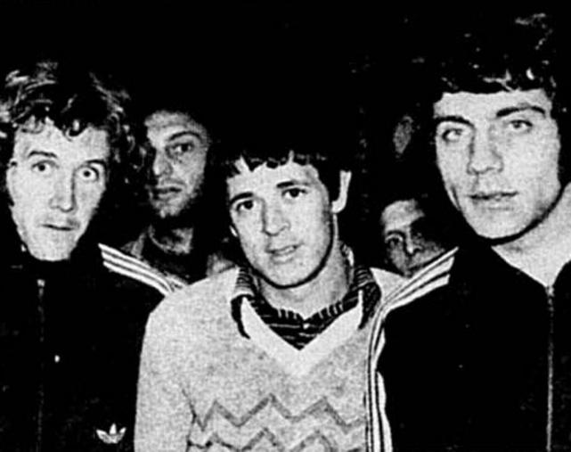 EN 1974. El gol que le marcó a Atlético, con Ruiz vencido; y rodeado por Babington y Brindisi, posando para LA GACETA.