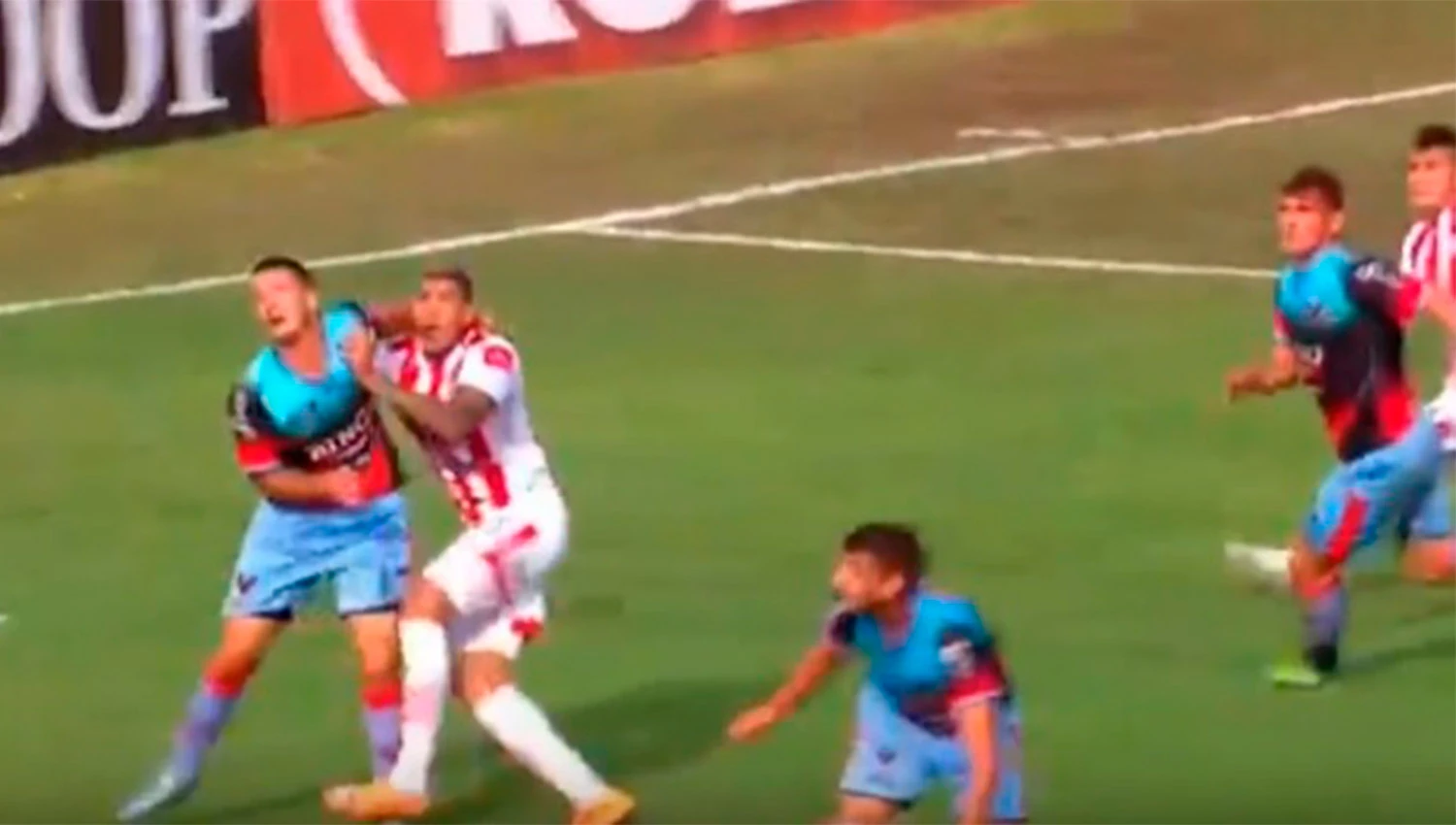 Nicolás Gásperi tomó del cuello a Benegas y dejó al jugador "Santo" en el suelo. Ocurrió cuando Benegas se disponía a recibir un centro al área.
