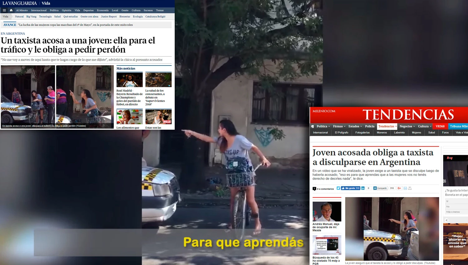 Luego de que medios nacionales como "Clarín", "Infobae" y "La Nación" se hicieran eco del caso ocurrido en Buenos Aires y Lavalle, en pleno Barrio Sur, el diario español "La Vanguardia" y el portal mexicano "Milenio" le dieron espacio a la publicación. "Un taxista acosa a una joven: ella para el tráfico y le obliga a pedir perdón", tituló el medio español. El sitio mexicano, en tanto, presentó la nota de la siguiente manera: "Joven acosada obliga a taxista a disculparse en Argentina".