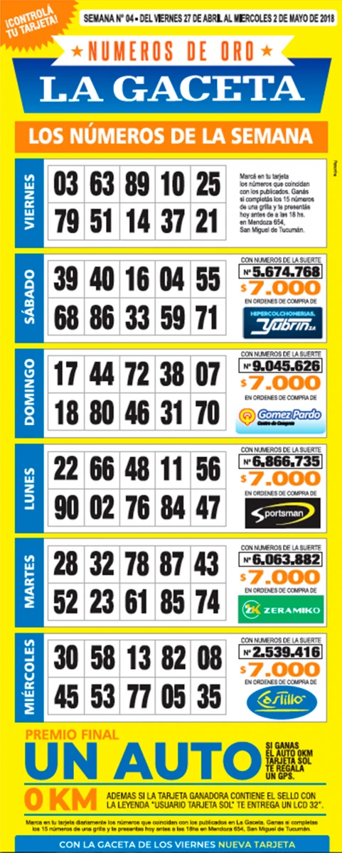 La grilla completa de los Números de Oro de LA GACETA