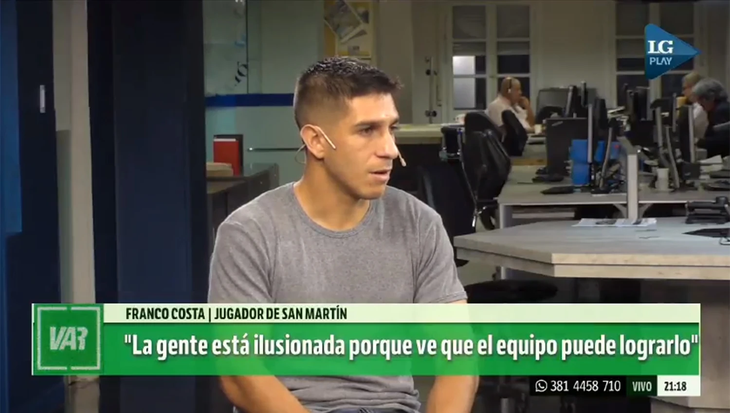 En una visita a los estudios de LG Play, Costa le contó a VAR sus sensaciones tras marcar el tercer gol del "Santo" en tiempo suplementario de un partido que tuvo a San Martín abajo en el marcador durante la mayor parte del encuentro.