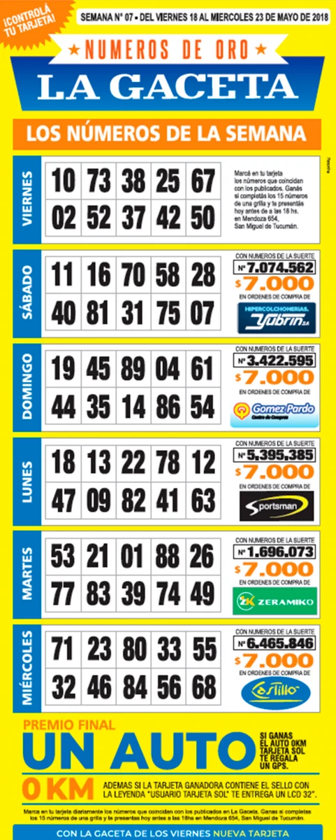 La grilla completa de los Números de Oro de LA GACETA