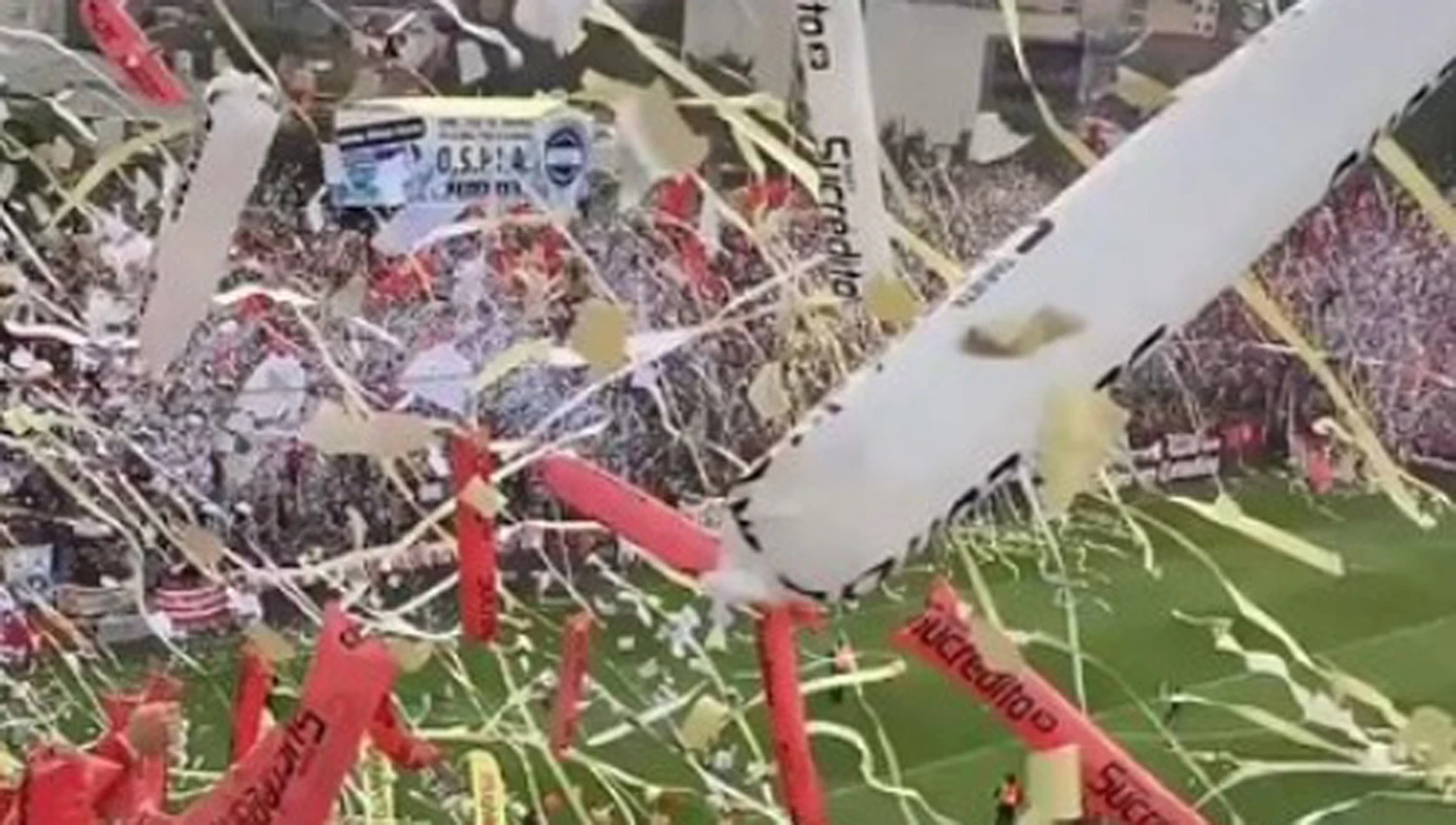 Miles de hinchas llegaron al estadio con muchas horas de anticipación y tiñeron de rojo y blanco la tarde gris. Para la salida del equipo a la cancha, los fanáticos se hicieron escuchar con un súper recibimiento.