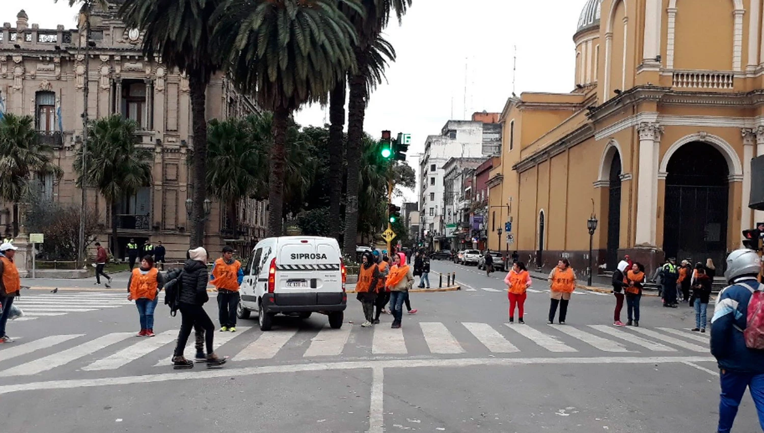 En tanto el Frente de Trabajadores del Interior reclaman por los cupos para merenderos que le habían prometido, en la esquina de la Casa de Gobierno. Por este motivo, la intersección de 25 y San Martín y la de Laprida y San Martín se encuentran imposibilitadas para el tránsito vehicular.