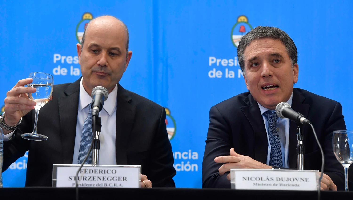 "Estamos muy contentos con lo que hemos logrado", dijo esta noche el ministro de Hacienda, Nicolás Dujovne, durante una conferencia de prensa que brindó junto al presidente del Banco Central, Federico Sturzenegger, en el Centro Cultural Kirchner.