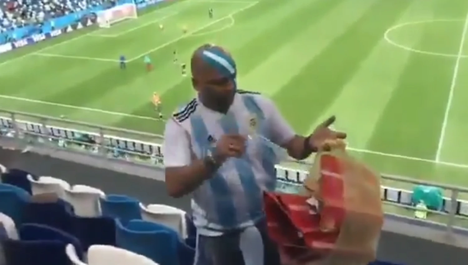Después del partido del jueves, cuando Argentina cayó por 3-0 frente a Croacia, un hincha de la selección nacional se quedó limpiando las tribunas del estadio ruso de Nizhni Nóvgorod.