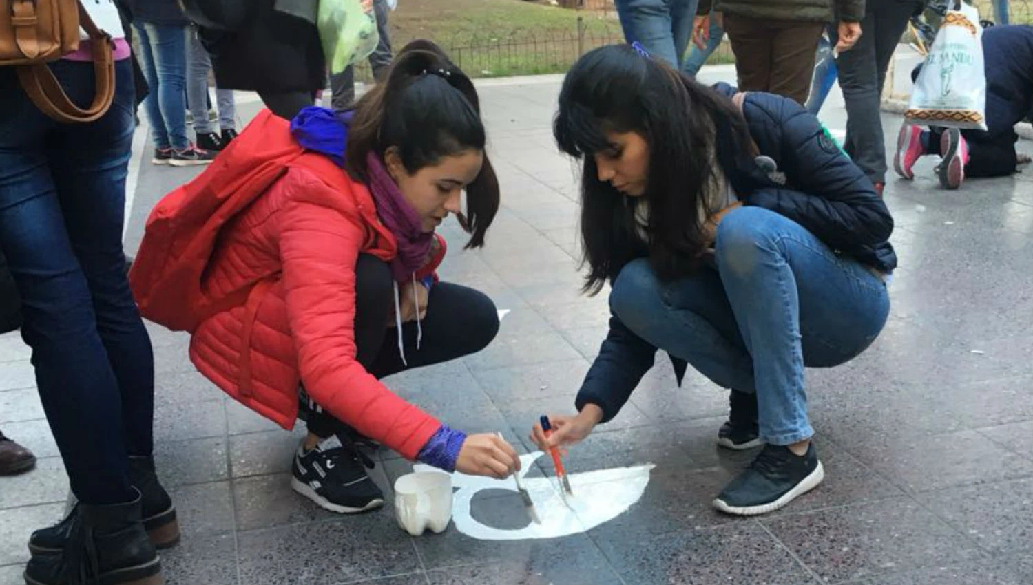 "Hay que recordar que la agrupación Hijos impulsó que se pintaran los pañuelos en todo el país dentro de una campaña nacional que se llamó 'si borran un pañuelo, pintamos miles'. Y eso es lo que estamos haciendo", dijo Sara Mrad, de Madres de Plaza de Mayo.