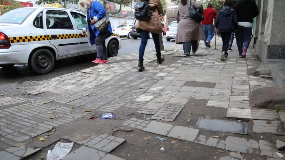 En El Bajo hay comerciantes que están habituados a ver los problemas que enfrentan los transeúntes por veredas en malas condiciones. Raimundo Lobo, que atiende un local en la calle Francia al 100, fue contundente. “Están reventadas. Las baldosas ya no están. Acá mucha gente se ha caído por esa razón y cuando llueve, es peor todavía”, detalló. De esa forma hizo referencia a uno de los principales inconvenientes: las baldosas flojas o inexistentes.