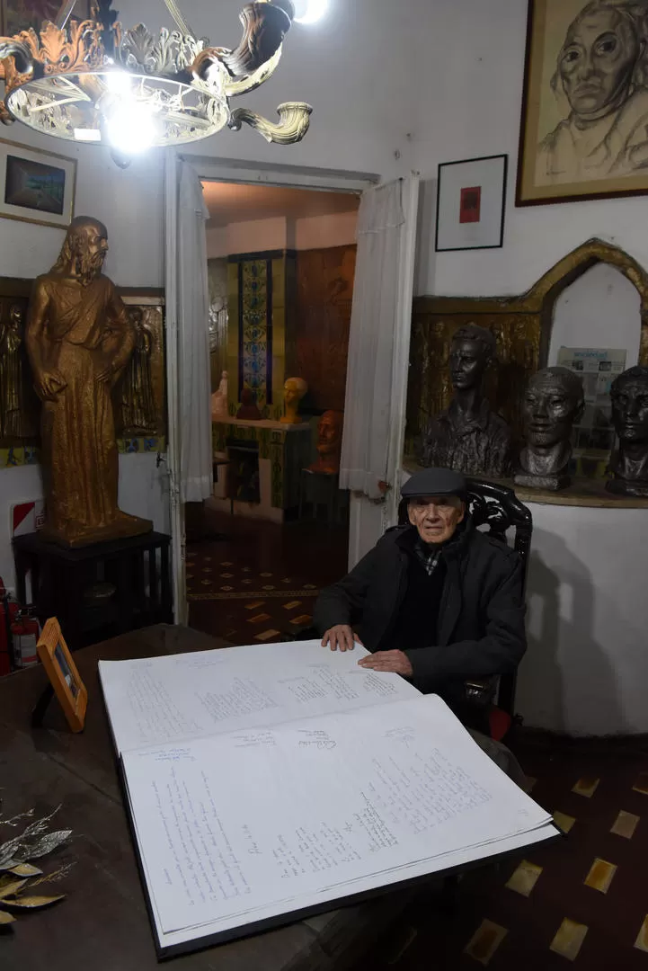 EN EL MUSEO. Iramain junto al libro donde comenzó a escribirse el poema. LA GACETA / FOTO DE DIEGO ARÁOZ