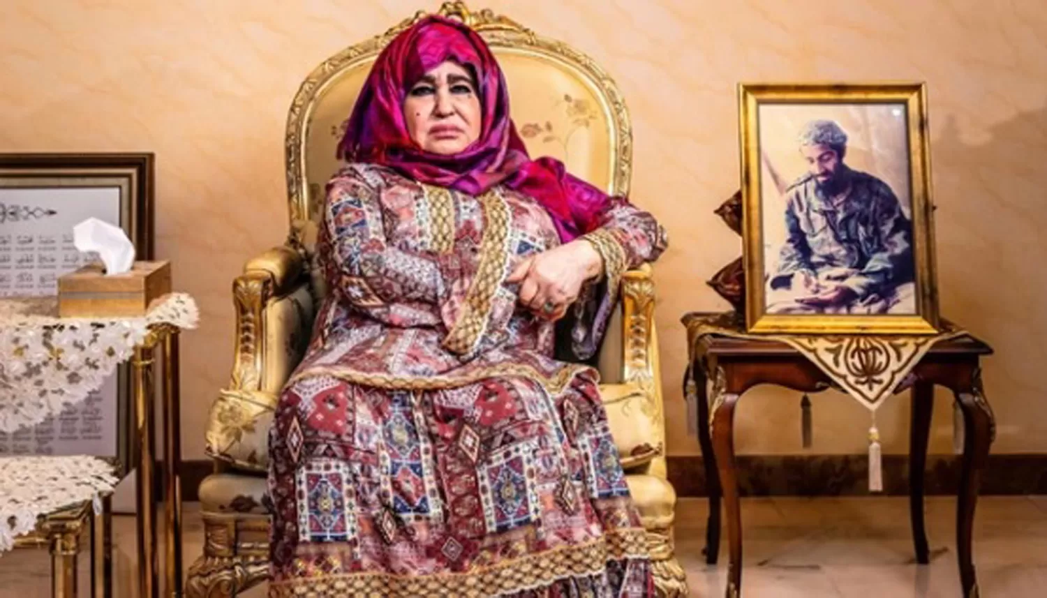 ENTREVISTA. El periódico británico The Guardian entrevistó a la madre de Osama bin Laden, quien tiene una foto de su hijo en el centro de la sala principal de su casa FOTO TOMADA DE INFOBAE.