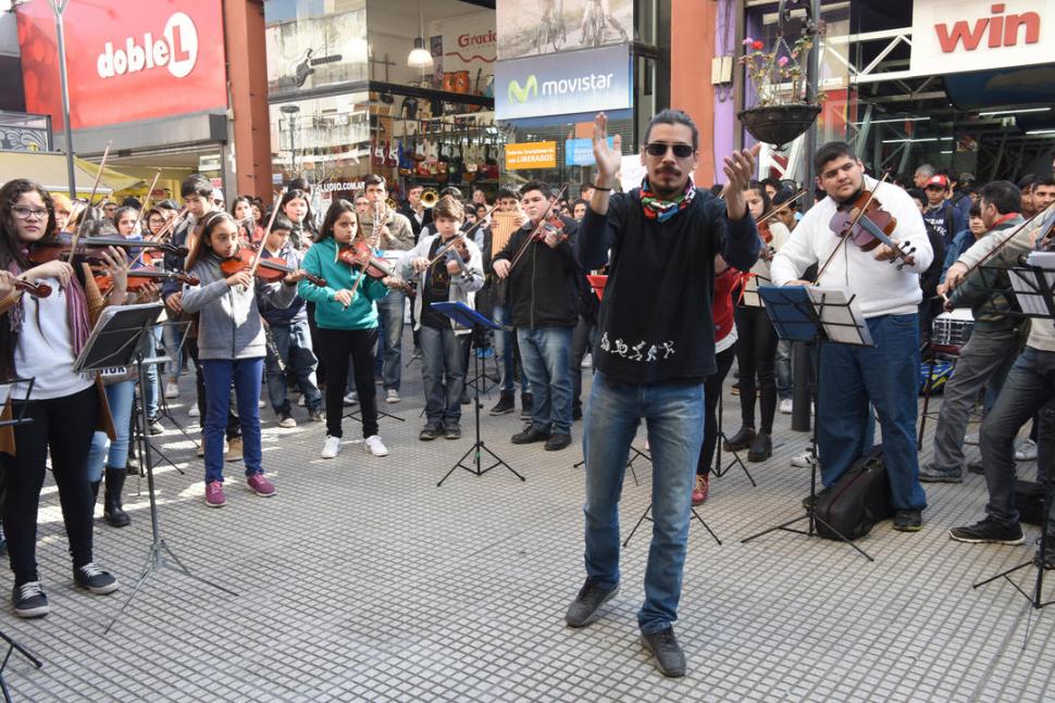 Desde carnavalitos hasta un par de temas de “Queen” surcaron en la mañana de ayer la peatonal Mendoza, y convocaron a una multitud dispuesta a compartir un concierto sabatino a cielo abierto. Con sus violines, sus cornos, sus contrabajos, sus cellos, sus clarinetes y sus tambores (entre muchos otros instrumentos) los chicos y jóvenes del Programa de Orquestas y Coros del Bicentenario reclamaron con música por la continuidad de esa propuesta, creada en 2008 por el gobierno nacional. En la protesta musical, que se concentró frente al edificio de LA GACETA, participaron tanto los jóvenes músicos como los profesores del Programa -integrado por nueve orquestas y once coros- y numerosos padres de los chicos. Como dijo Cristina Heredia, representante de las familias de la Orquesta Rincón del Este, de Alderetes, el programa marcó un antes y un después en esa comunidad. “Quién hubiera imaginado que una de mis hijas toque el violín, y la otra el contrabajo”, graficó la mujer.