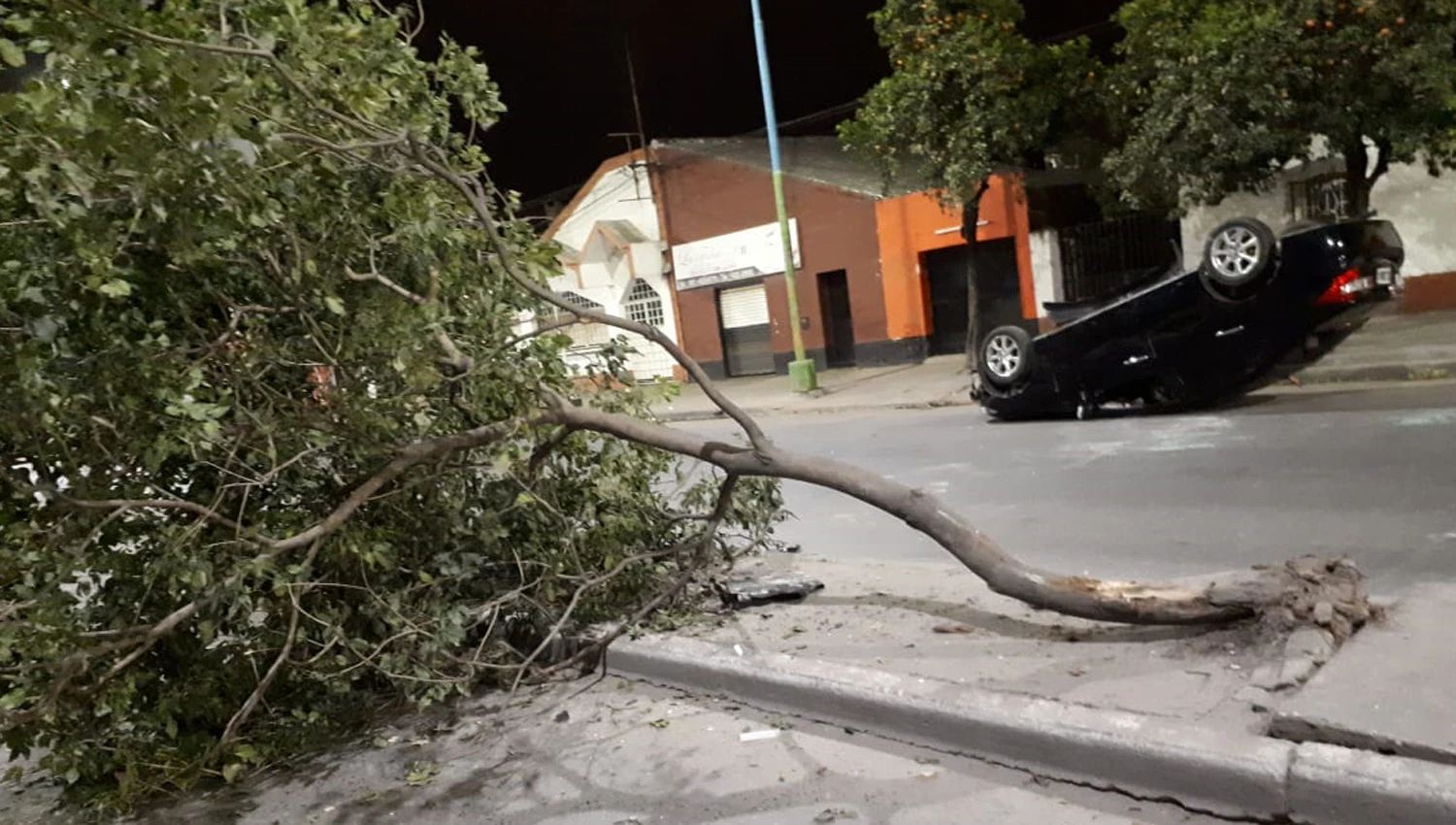 Por causas que se deberán establecer, el conductor perdió el control del vehículo, que chocó contra un árbol y terminó volcado en la mano oeste de la avenida.