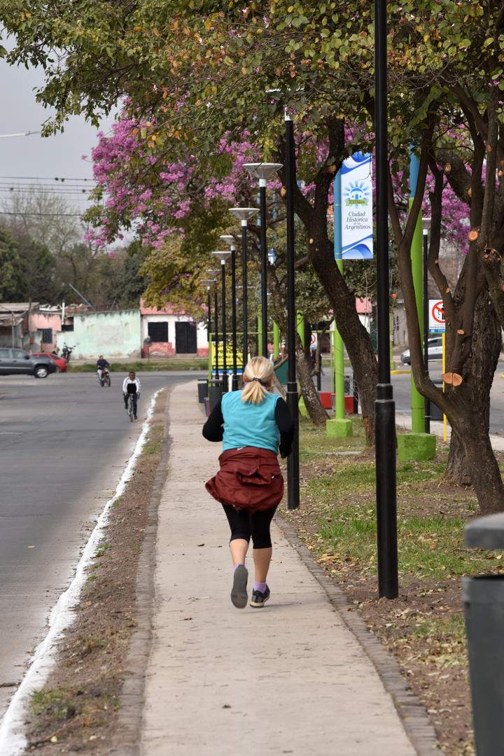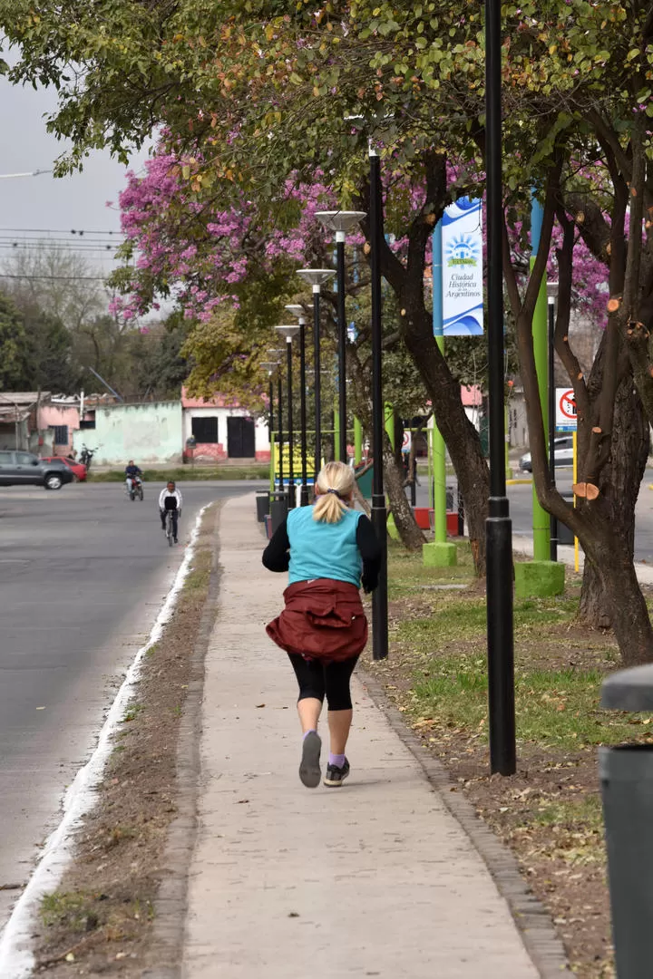 VIDA AL AIRE LIBRE. Una mujer entrena en el nuevo paseo peatonal de la platabanda de la Adolfo de la Vega. LA GACETA / FOTO DE INÉS QUINTEROS ORIO.