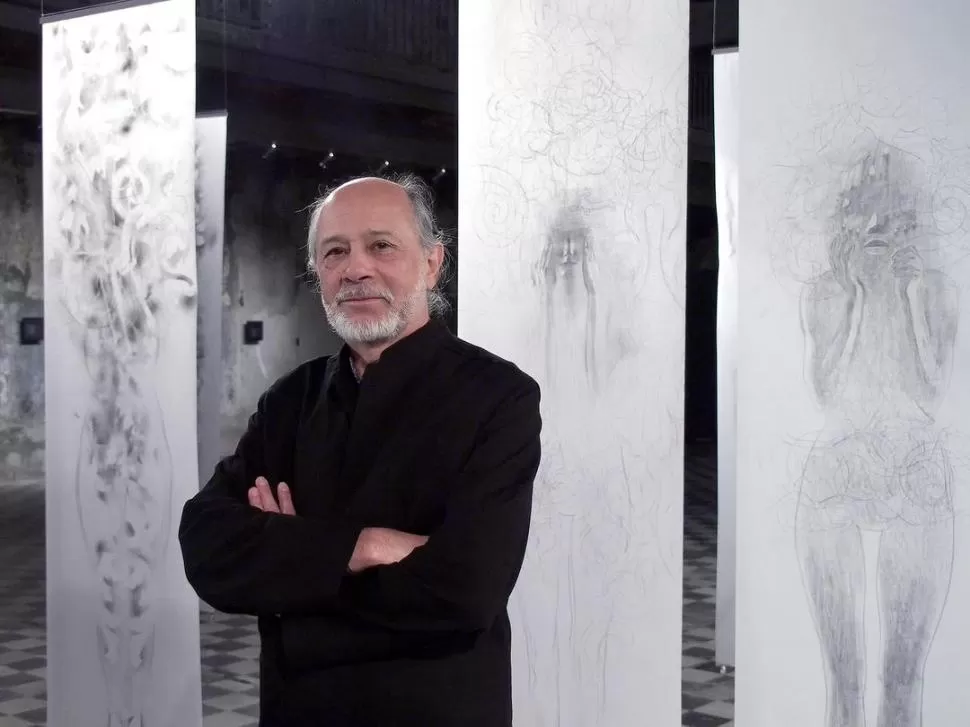 EL ARTISTA Y SU OBRA. Tras seis años sin exponer en la provincia, Ricardo Abella trae su muestra de dibujos “Tran(sito)”.