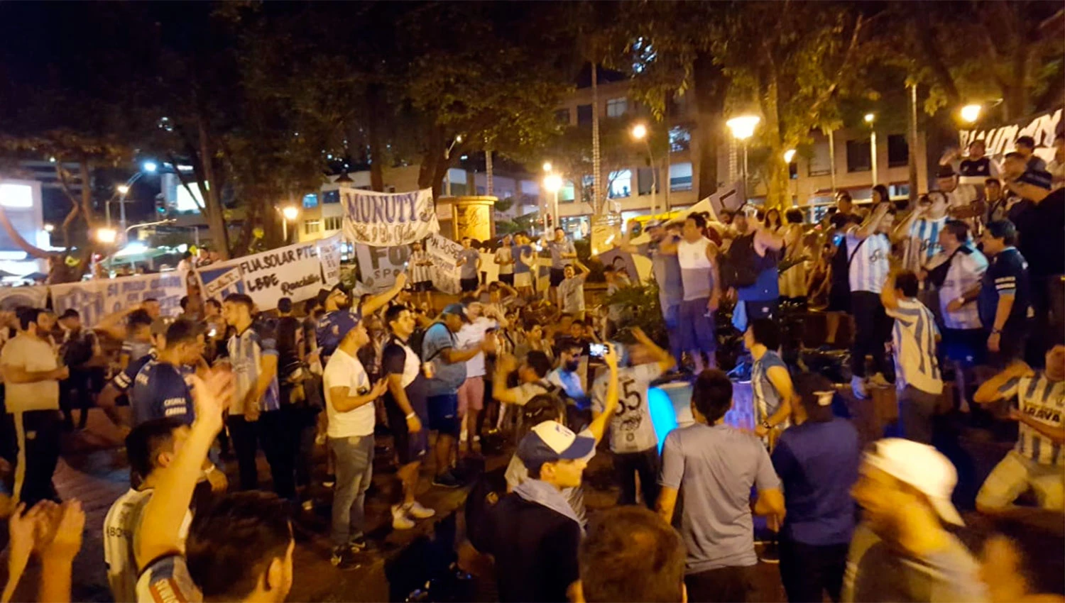 A casi 24 horas del histórico cruce para los de 25 de Mayo y Chile, el celeste y blanco le dio color a las calles colombianas. Los tucumanos se reunieron en el Parque Lleras para realizar banderazo.