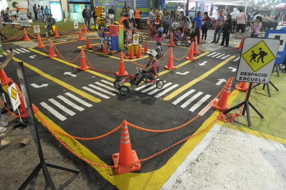 PEQUEÑOS CONDUCTORES. Los chicos aprenden las normas del tránsito en el stand de la Municipalidad.