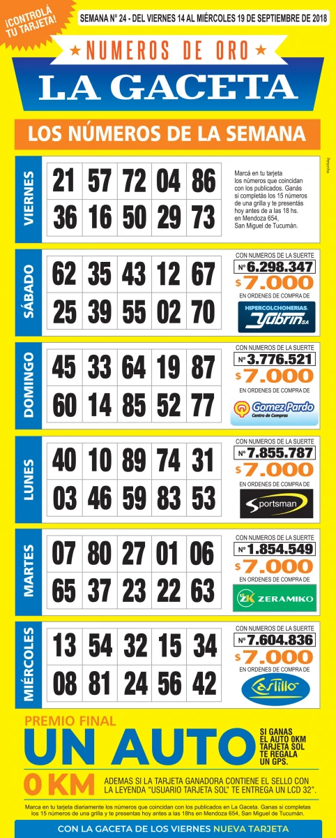 Controlá tu tarjeta: la grilla completa de los Números de Oro