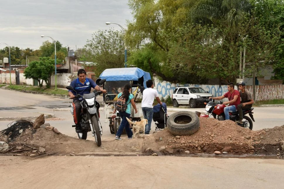 Tras la caída de uno de los cruces de la avenida Colón, vecinos del sur de la capital reclamaron soluciones para transitar con seguridad. Un montículo de tierra de un lado y un rejunte de escombros del otro impiden el paso a automovilistas, pero no hay señalización clara. Dos policías vigilan la zona.