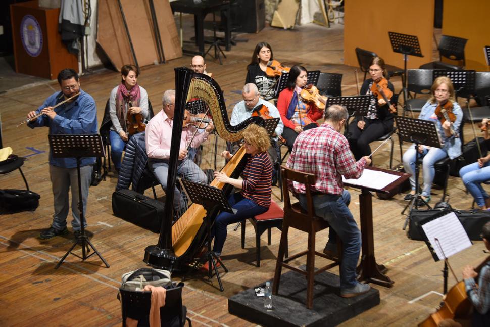 ENSAYO. Gustavo Velazco en flauta y el gran instrumento de cuerdas comparten escenario como solistas. LA GACETA / FOTO DE ANALÍA JARAMILLO.-