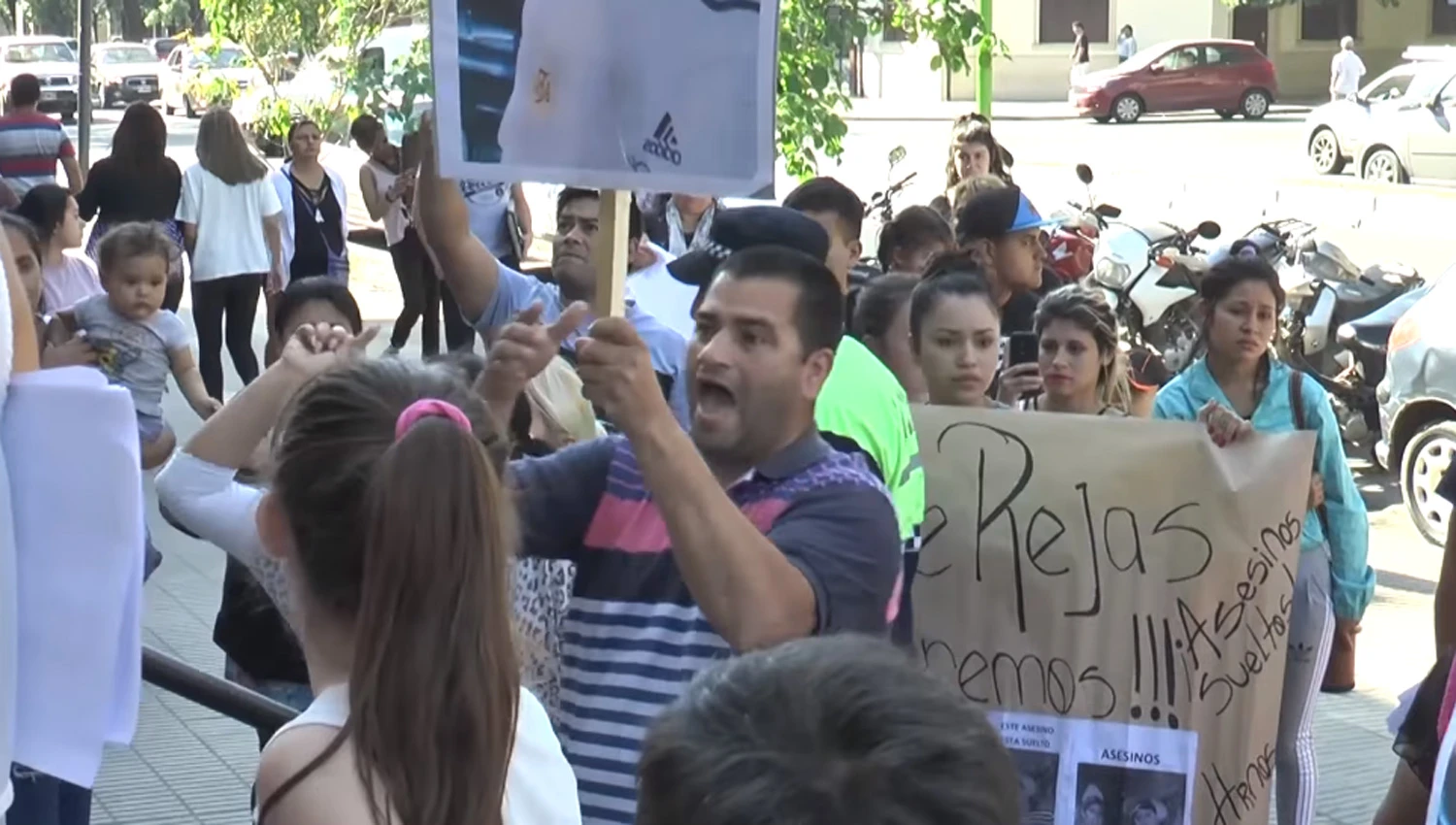 Los familiares y amigos del chico fallecido concurrieron al palacio de avenida Sarmiento al 400 para mostrar carteles con los rostros de los principales acusados del asesinato. Algunos de los manifestantes expresaron su dolor y reclamaron que la Justicia actúe de inmediato para que el crimen no quede impune.