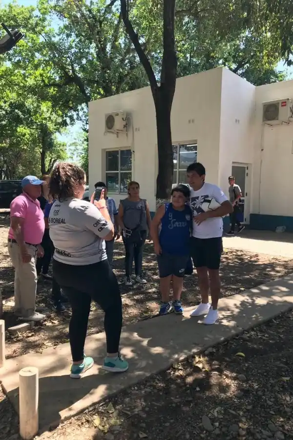 A unos cinco metros, un adulto gambetea la charla. Cerca suyo, dos chicas y un nene se pegan al arbusto lateral que da a la entrada del camino central que los dirigirá en breve hacia el vestuario del plantel superior. Hace calor, pero a estos chicos no les importa. Alexis, simpaticón él, le hace saber LG Deportiva cuál es su misión. “Venimos a sacarnos fotos con todos los jugadores”, cuenta el amiguito que vino hasta el predio a hacerle pata a Nahir, su hermana que pronto cumplirá 15 años.