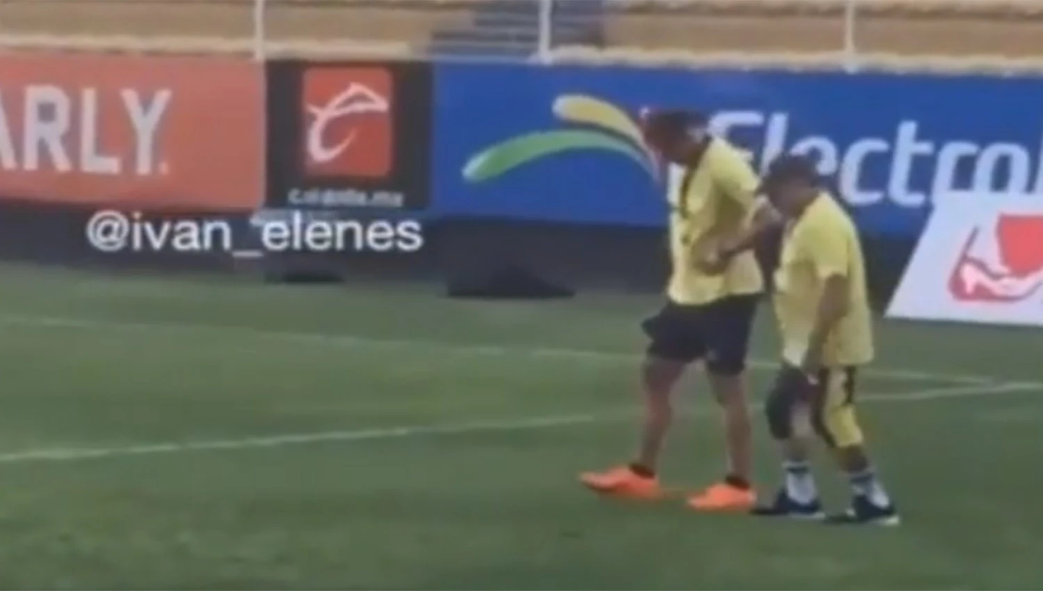 A Maradona se lo ve caminar muy lento, con evidente dificultad, en un video que se conoció en las últimas horas mientras recorre la cancha en compañía de Luis Islas, su ayudante de campo.