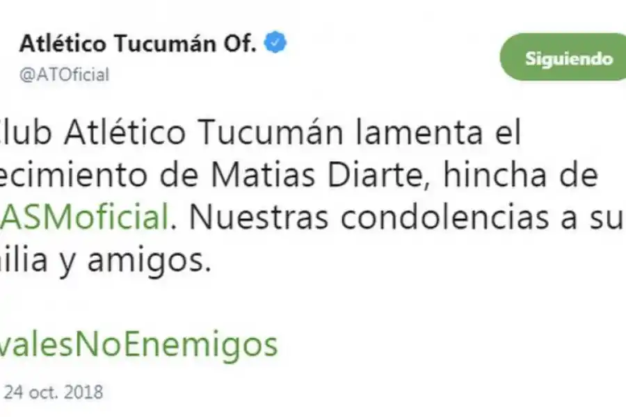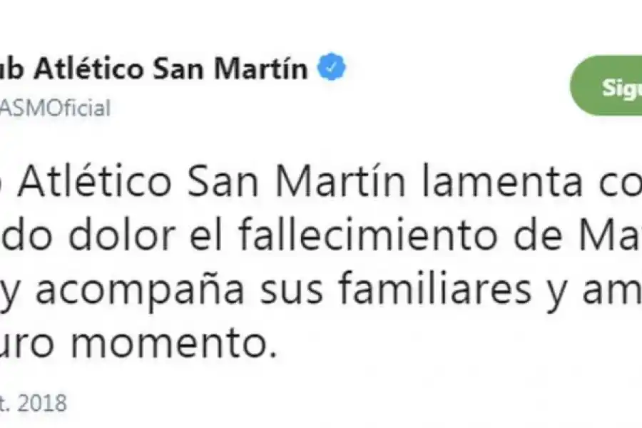 La golpiza recibida le ocasionó graves lesiones en su pierna izquierda. Pero lo peor iba a llegar en un quirófano. Según explicaron algunos familiares, una complicación antes de la operación hizo que Matías quedara en coma. Ayer, su corazón dijo basta y el mundo del fútbol lo despidió con honores. Las cuentas oficiales de Twitter de San Martín y Atlético lo homenajearon; también los jugadores “santos” en las redes sociales.