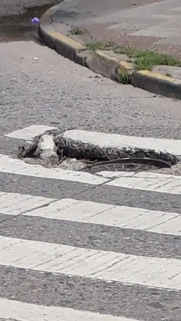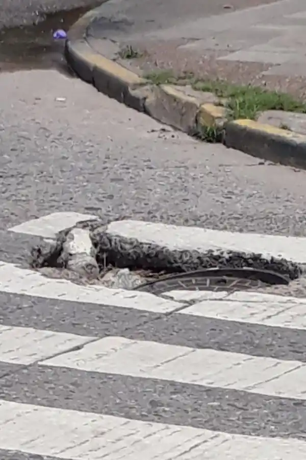En Alem y Lavalle hay pozo con tapa de la SAT que se está deteriorando, además de que le falta la tapa. Un transeúnte envió la imagen superior, poniendo en aviso del peligro que corren quienes transiten en auto y/o moto, porque puede romperse el tren delantero y sufrir una tragedia.