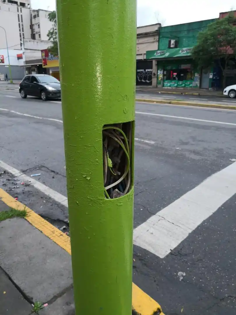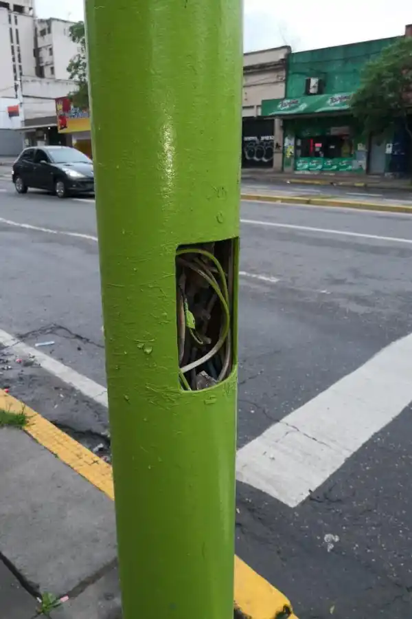 Una vecina advierte que en 24 de Septiembre esquina San Luis hay un poste de luz sin tapa desde hace 10 años. Cuenta que ella misma tapó ese agujero con cinta aisladora, pero reconoce que lo rompieron, por lo que pide que actúen las autoridades antes que alguien se electrocute.